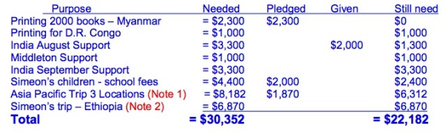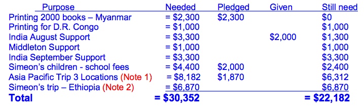 If you are not able to give at this time, I thank you for considering these needs and would ask you to pray that God would lead us to those who can give. God bless you!