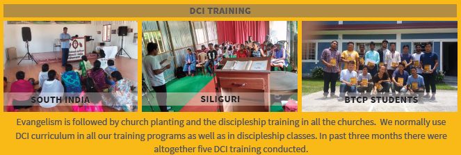 Evangelism is followed by church planting and the discipleship training in all the churches. We normally use DCI curriculum in all our training programs as well as in discipleship classes. In past three months there were altogether five DCI training conducted.