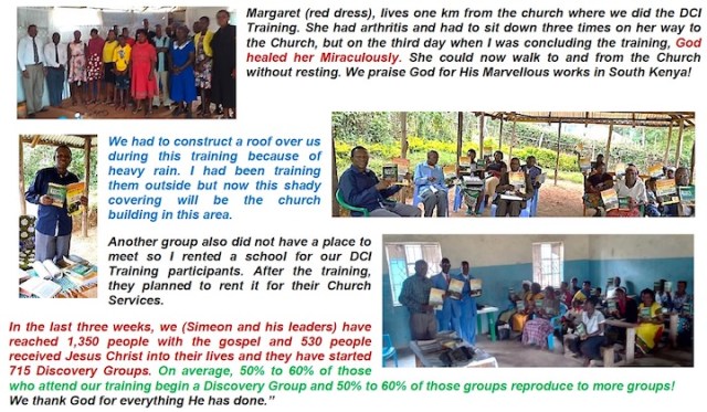I received the following report from Dr. Simeon Oyugi who is our African Director. He shares what he and his team have accomplished in the previous three weeks. I know you will be encouraged: